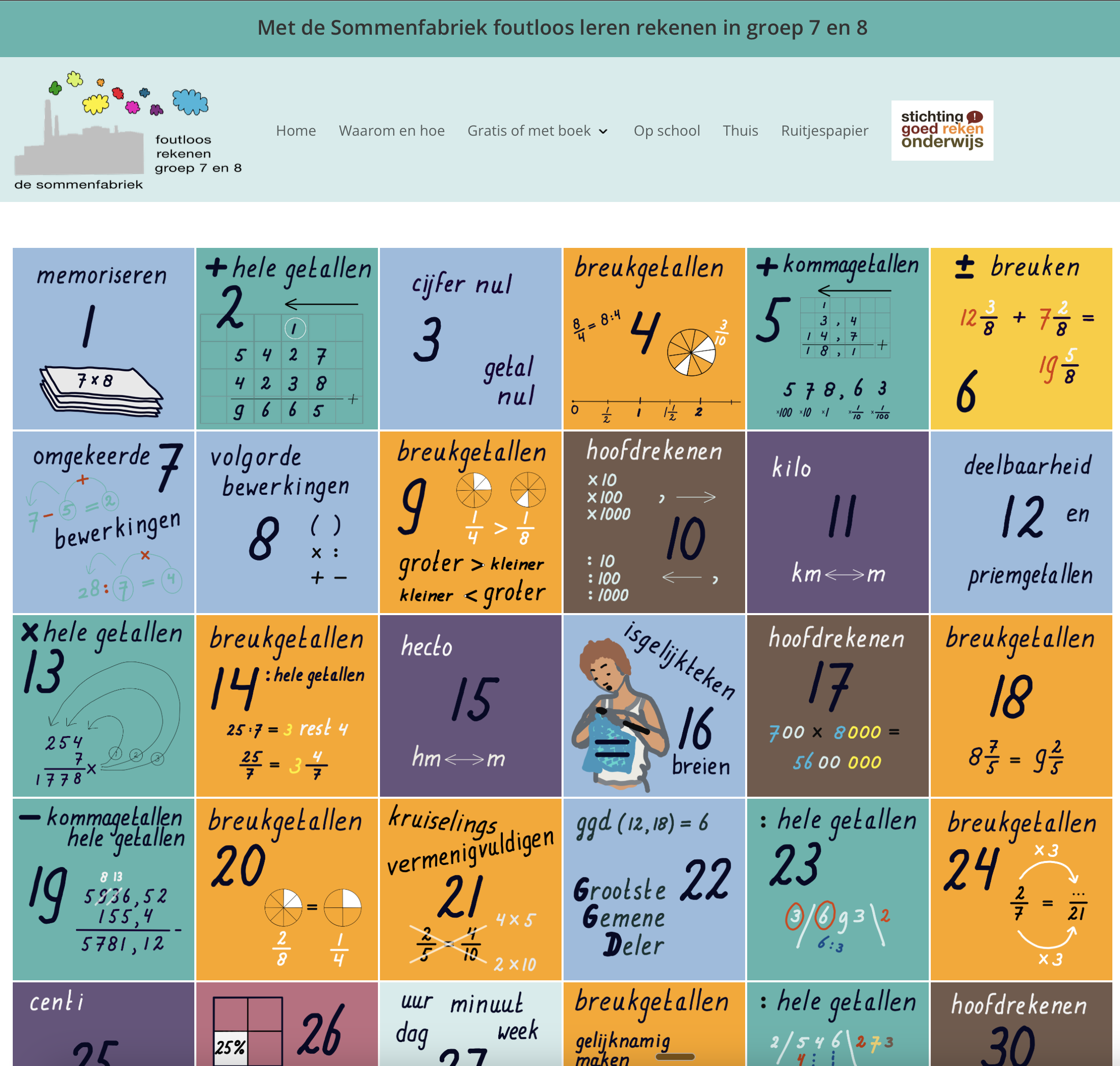Op de gratis website kan iedereen gratis alle lessen volgen: video-uitleg van de theorie, video-uitleg van de oefeningen, printvellen met de oefeningen, printvellen met de antwoorden, ruitjespapier, enz.